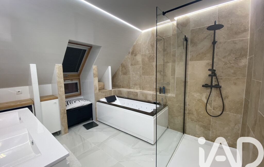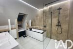 A l'étage, un palier dessert 3 chambres (24 - 22 -20 m2), une SDB, baignoire balnéo et douche italienne, refaite en 2025 et un WC séparé. Chauffage électrique : Plancher rayonnant au RDC et radiants à l'étage. Isolation thermique et phonique. Tout à l'égout.