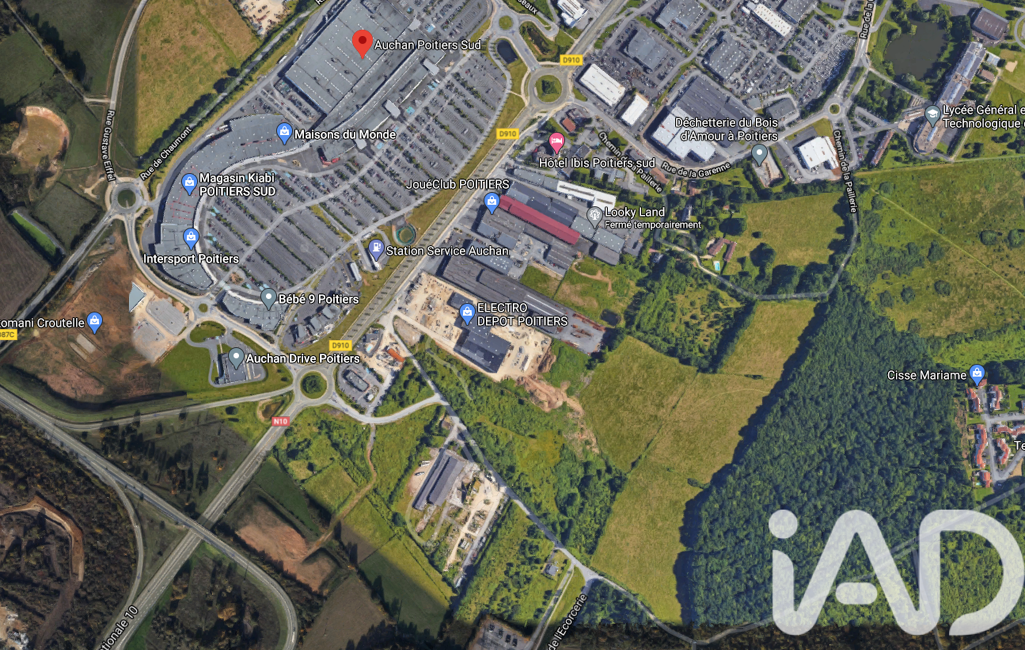 iad France - Ludovic Seguy vous propose: Ref 1987712-LS - POITIERS (86000) Exclusivité, Terrain dans zone commerciale, réserve foncière non viabilisée d'une contenance de 32 000 m². Parcelle située au cOEur d'une future extension d'urbanisation de la Zone d'Auchan Poitiers SUD. Bien placé avec une belle visibilité sur grand axe à fort passage et dispose d'un accès rapide à la nationale 10, entrée/sortie autoroute A10 (axe Paris - Bordeaux).