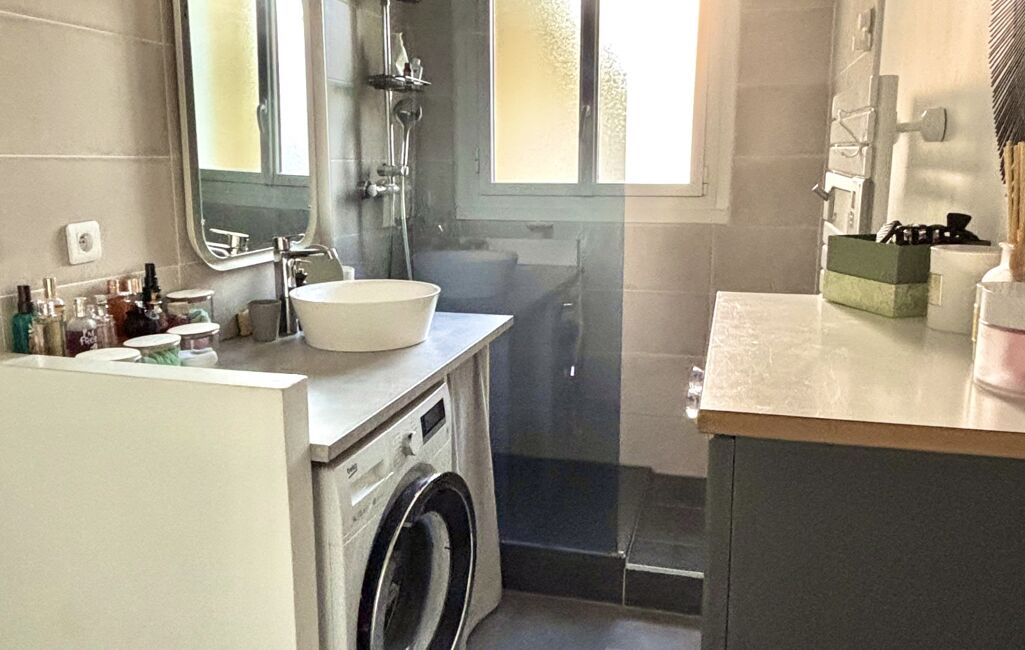 L'appartement vous accueille avec une entrée amenant à une belle pièce de vie composée d'un séjour avec sa cuisine contemporaine ouverte équipée et aménagée, offrant 2 expositions, un couloir avec beaucoup de rangements dessert 2 jolies chambres et une salle d'eau récente d'un beau volume avec wc.