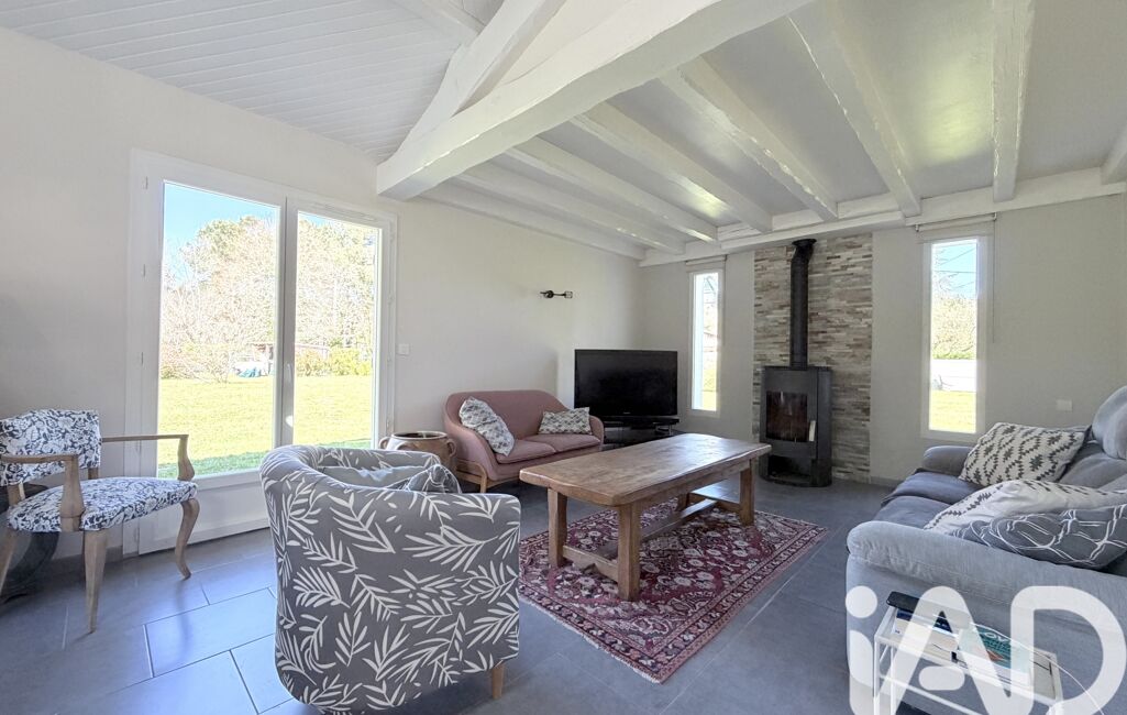 Dès l’entrée, la pièce de vie séduit par sa luminosité et ses volumes. Le séjour, avec son plafond rampant, crée une belle sensation d’espace, prolongée par un salon chaleureux équipé d’un poêle à bois.
