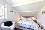 À l’étage : deux chambres supplémentaires, une salle de bain, un dressing et un espace mezzanine pouvant accueillir un bureau ou un coin détente