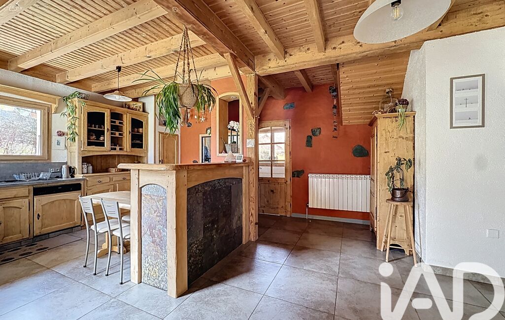 Dès l’entrée, la sensation d’espace, de lumière et de sérénité s’impose. La pièce de vie, exposée plein Sud, profite d’une luminosité constante et s’ouvre généreusement sur les extérieurs. La cuisine ouverte s’intègre parfaitement à cet espace convivial, organisé autour d’un poêle à bois.