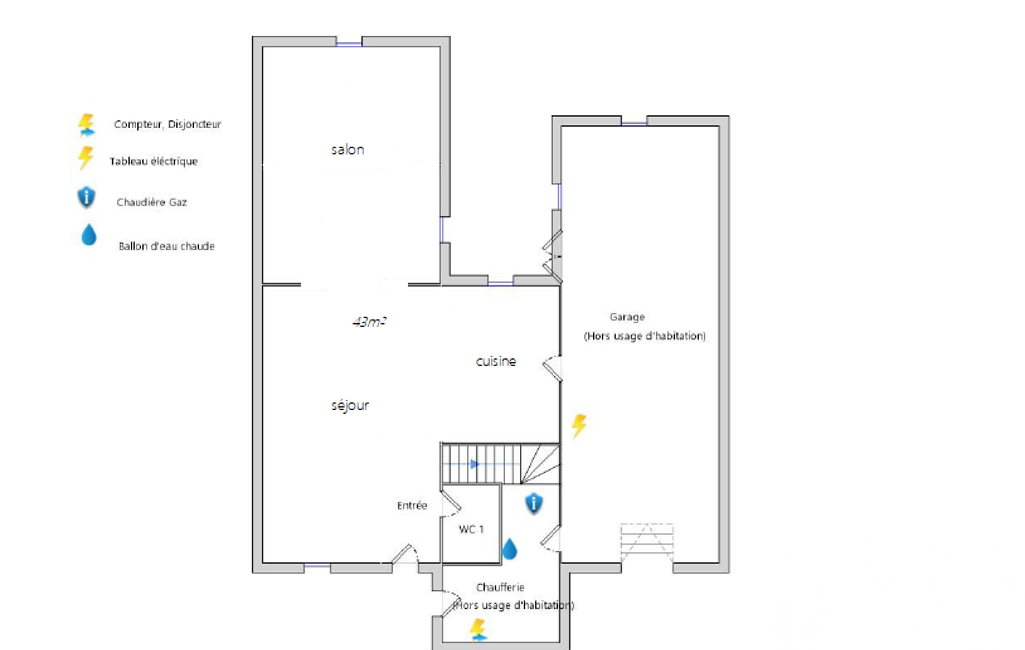 Au rez-de-chaussée, vous trouverez une entrée, un wc, une cuisine, un salon et une chambre.