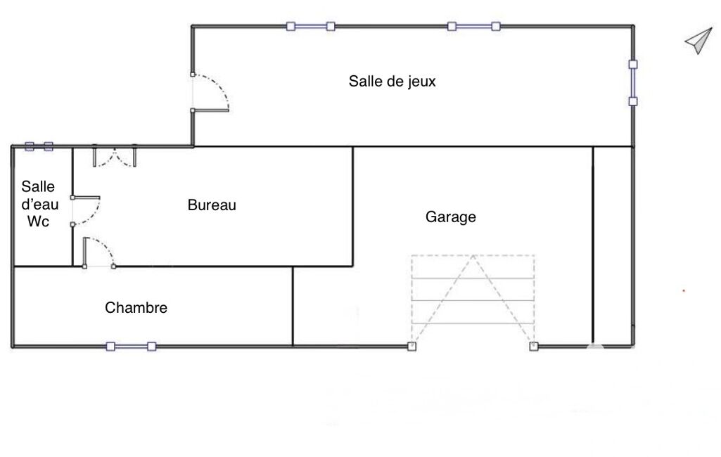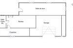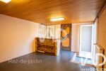 On y trouve également un garage et une pièce de 17 m² pouvant servir de salle de jeux ou d’atelier. Le rez de jardin est accessible par la porte de garage ou par l’arrière de la maison.