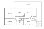 Entrée, pièce de vie ouverte sur une terrasse de 30 m², cuisine. Le coin nuit comprend un couloir desservant une salle d’eau, un WC séparé et deux chambres.