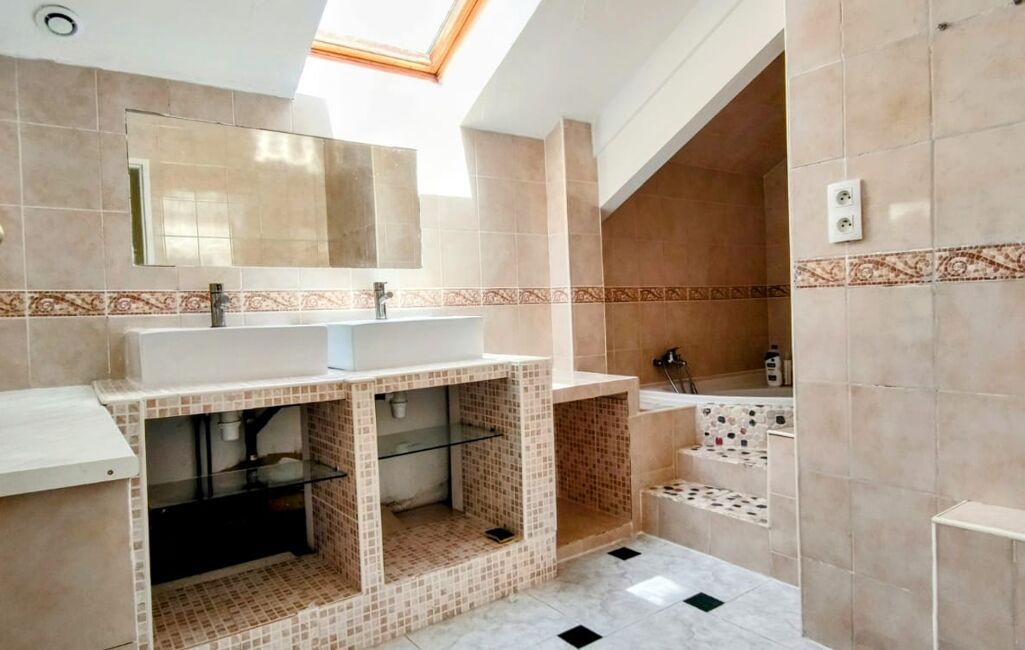 - À l’étage : quatre chambres spacieuses, une salle de bain et un WC suspendu indépendant avec lave-mains.