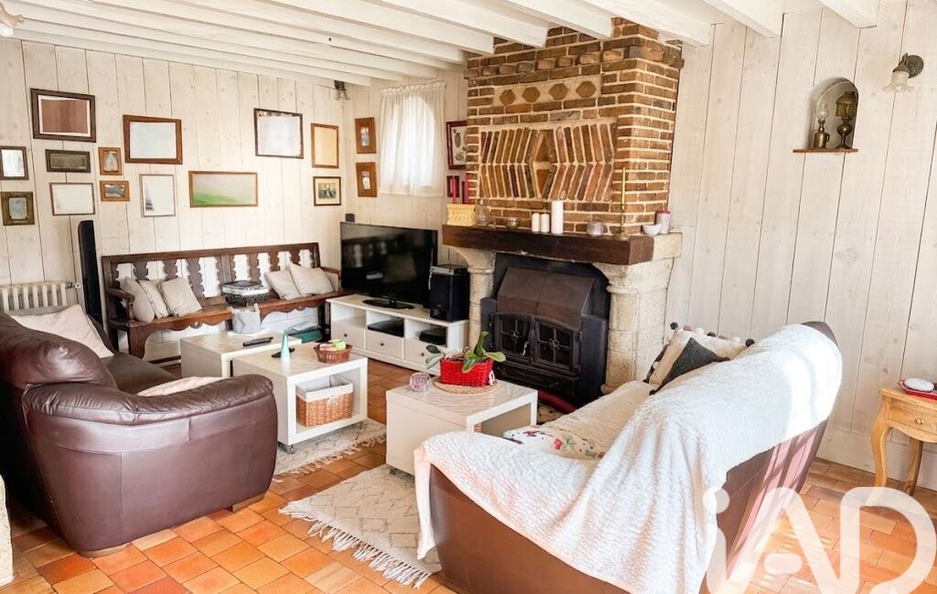 iad France - Sabine PERRIN vous propose: Autheuil-Authouillet, village avec commerces. 10 mn d'Evreux et des grands axes. Charmante longère de 163m². Au rez de chaussé vaste séjour salon / cuisine de 60 M² environ, une chambre de 22 M² environ (possibilité de créer une salle de bains privative) double garage avec grenier aménageable