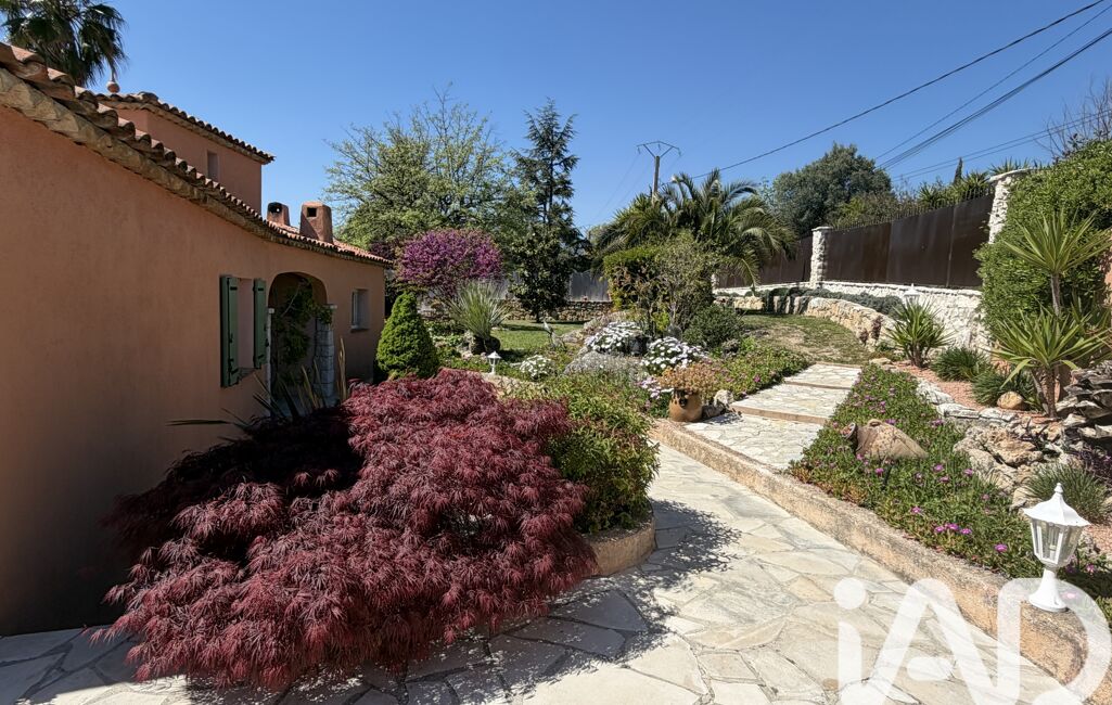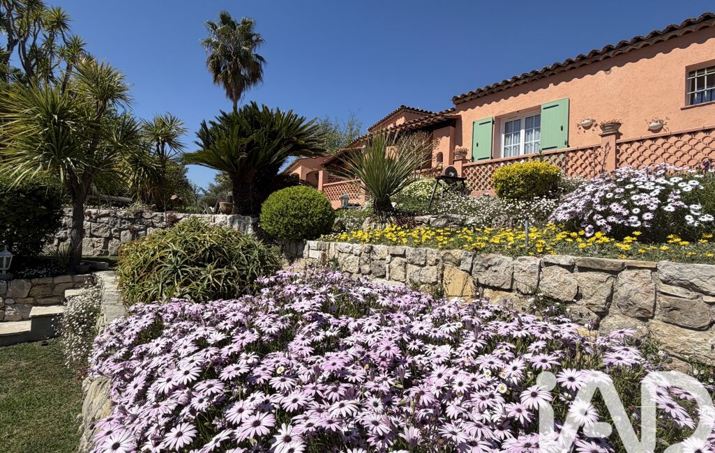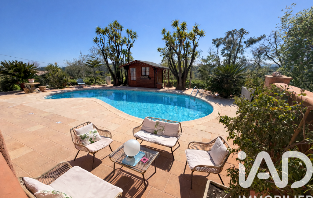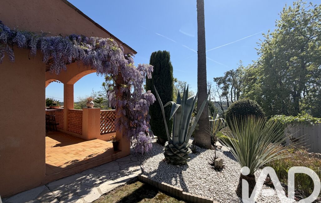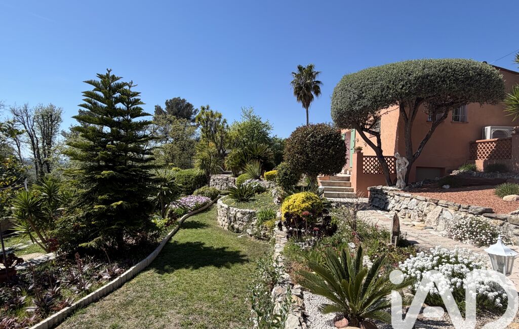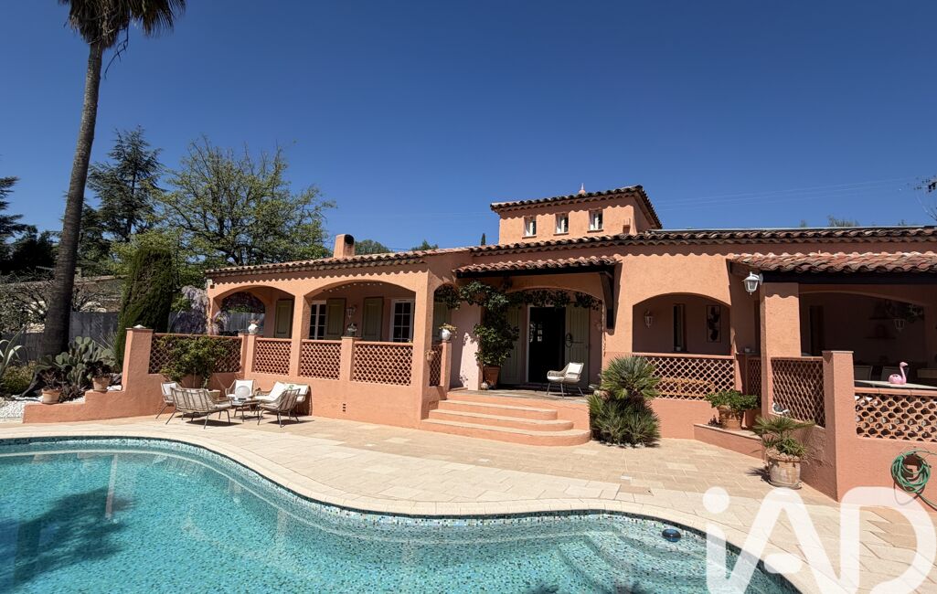iad France - Chahira Boulares vous propose: Opio – Élégante maison familiale avec piscine au sel, aperçu mer et jardin paysager, maison totalement de plain-pied