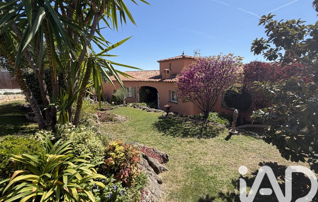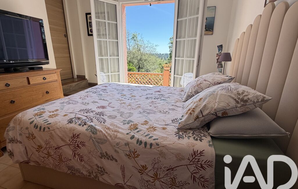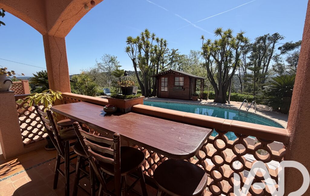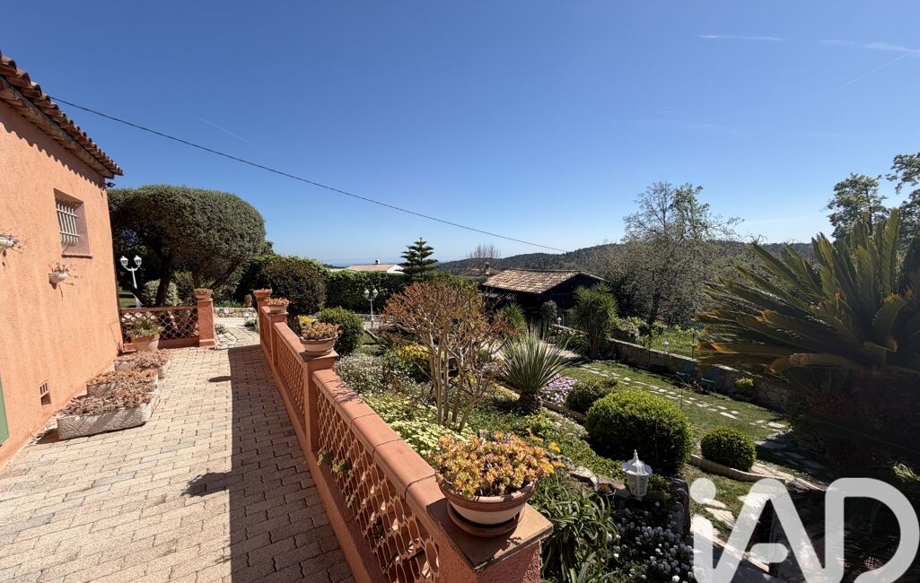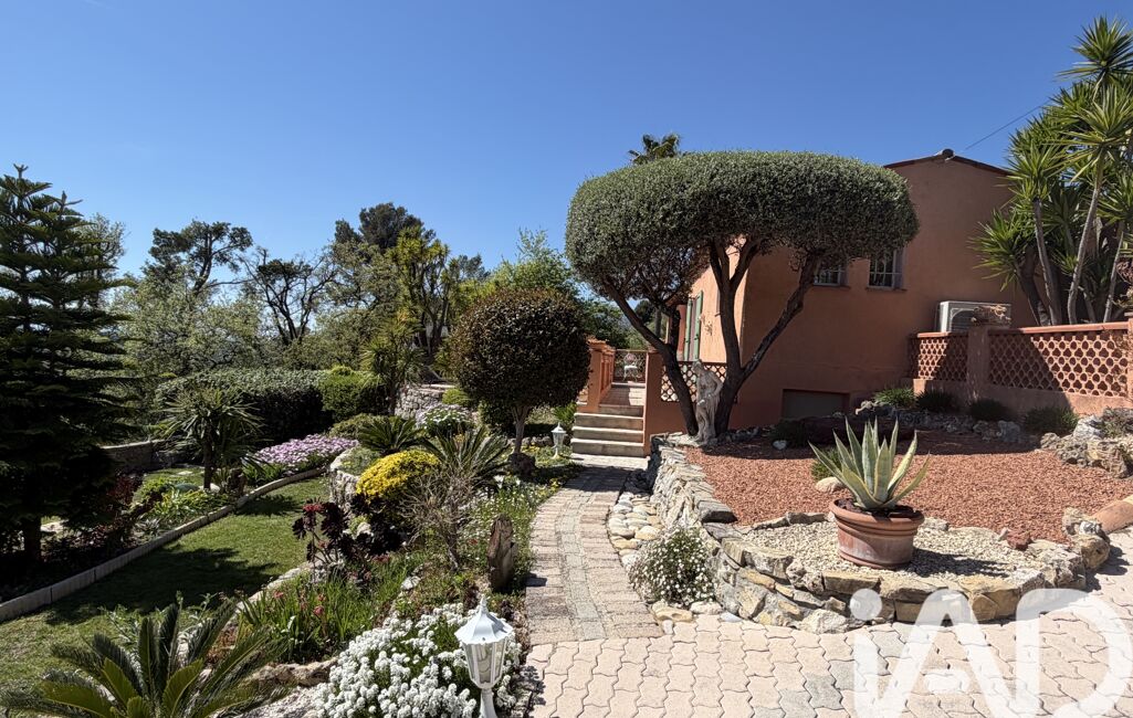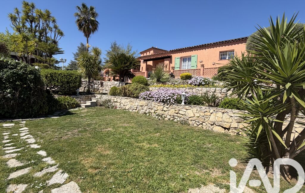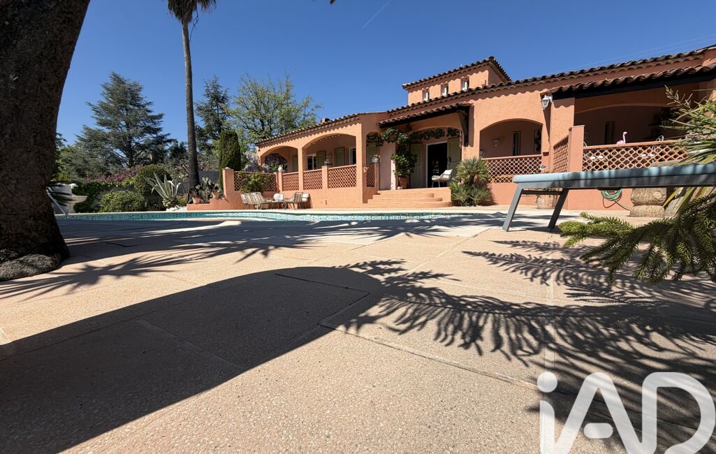 iad France - Chahira Boulares vous propose: Opio – Élégante maison familiale avec piscine au sel, aperçu mer et jardin paysager, maison totalement de plain-pied