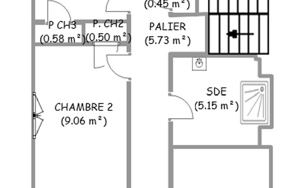 À l’étage : Palier distribuant 4 chambres de 9 à 20 m² pour la plus grande et une salle d’eau.