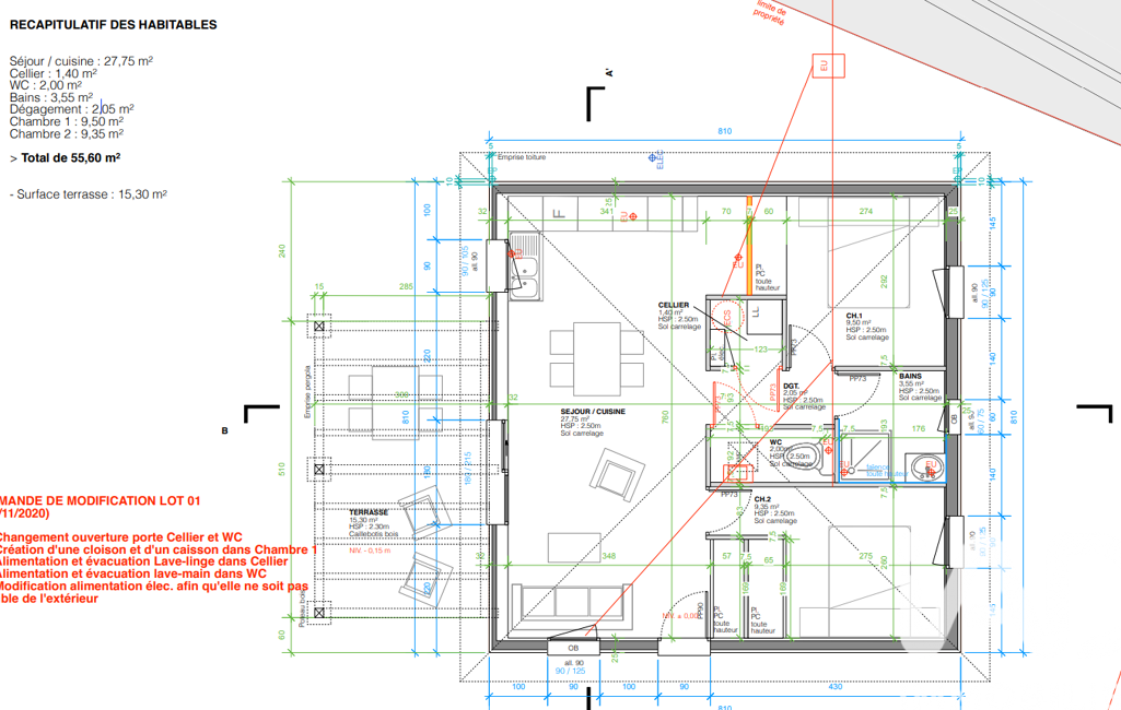 - Surface habitable : 56 m²