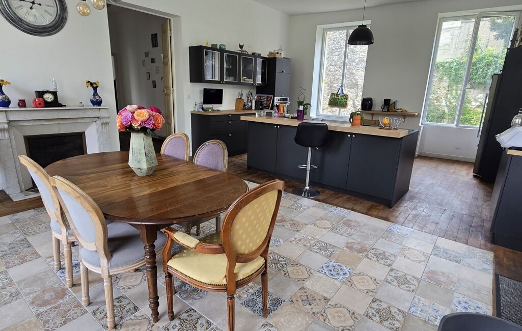 iad France - Christel Velly vous propose: MAISON BOURGEOISE RENOVEE A 30 MIN DE CHATEAU THIERRY AU COEUR D UN BOURG TOUS COMMERCES : elle offre une entrée, salon , une suite parentale, salle d'eau, wc, une chambre. Local technique, garage et cave voûtée. Au 1 er : palier desservant cuisine aménagée et équipée ouverte sur un coin repas (45m²), salle à manger, salon, salle de jeux, bibliotheque. A 2 eme : couloir desservant 4 chambres dont 3 avec salle d'eau privative. 2 dressings, buanderie. Pompe à chaleur recente. l'ensemble sur plus de 3 hectares environ.
