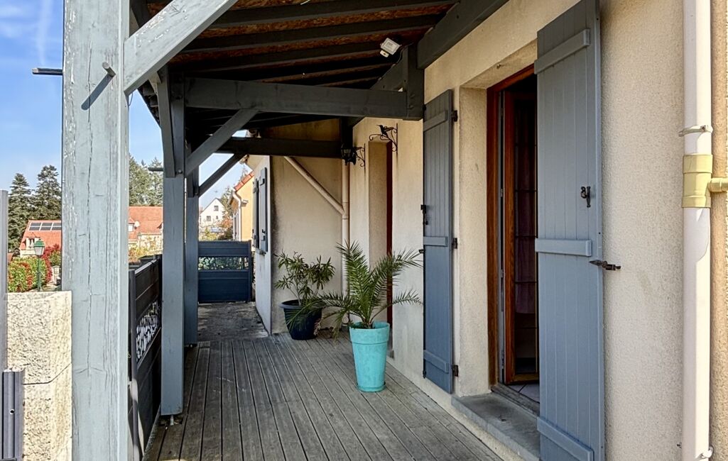 L'arrière de maison jouit d'une terrasse carrelée et d'une pergola idéale pour vos moments en extérieur et d'une partie jardin sans vis à vis.