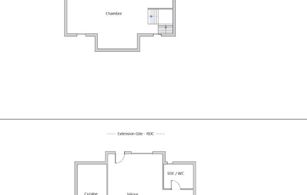 Il comprend une pièce de vie avec cuisine, une salle d’eau et une chambre. Ce gîte peut facilement être relié à la maison principale selon votre projet.