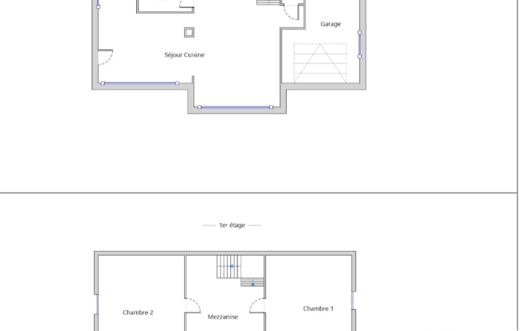 À l’étage : 2 chambres et une mezzanine.