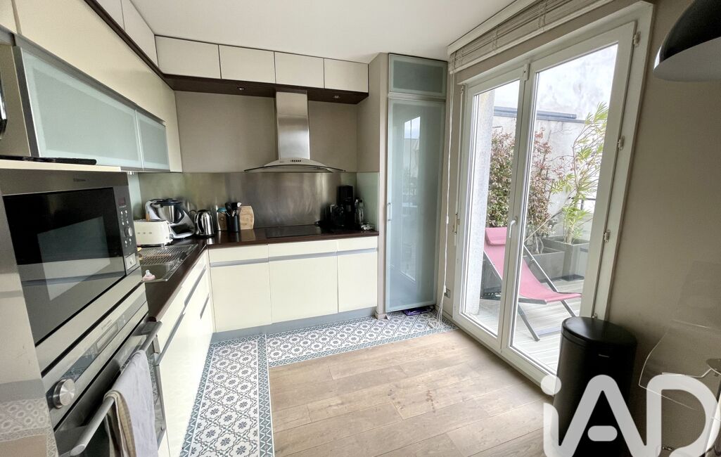 iad France - Elise Savary De Beauregard vous propose: Quartier des Ecrivains, à 5min du métro Barbara, dans un immeuble de standing des années 2000, magnifique appartement au 4ème et dernier étage avec ascenseur. L'appartement comprend une entrée avec placards, un vaste salon plein sud avec cuisine équipée ouverte et accès à une terrasse de 15m2 avec vue dégagée, un espace nuit avec 2 chambres dont une ayant accès à un balcon de 6m2, une salle de bain avec baignoire et douche, wc séparés. Les 2 chambres communiquent via une porte à galandage. Appartement en très bon état, refait par un architecte. Lumineux, calme, à proximité immédiate des commerces de l'avenue de la République et des écoles (sectorisation Boileau). Une cave et un box viennent compléter ce bien.