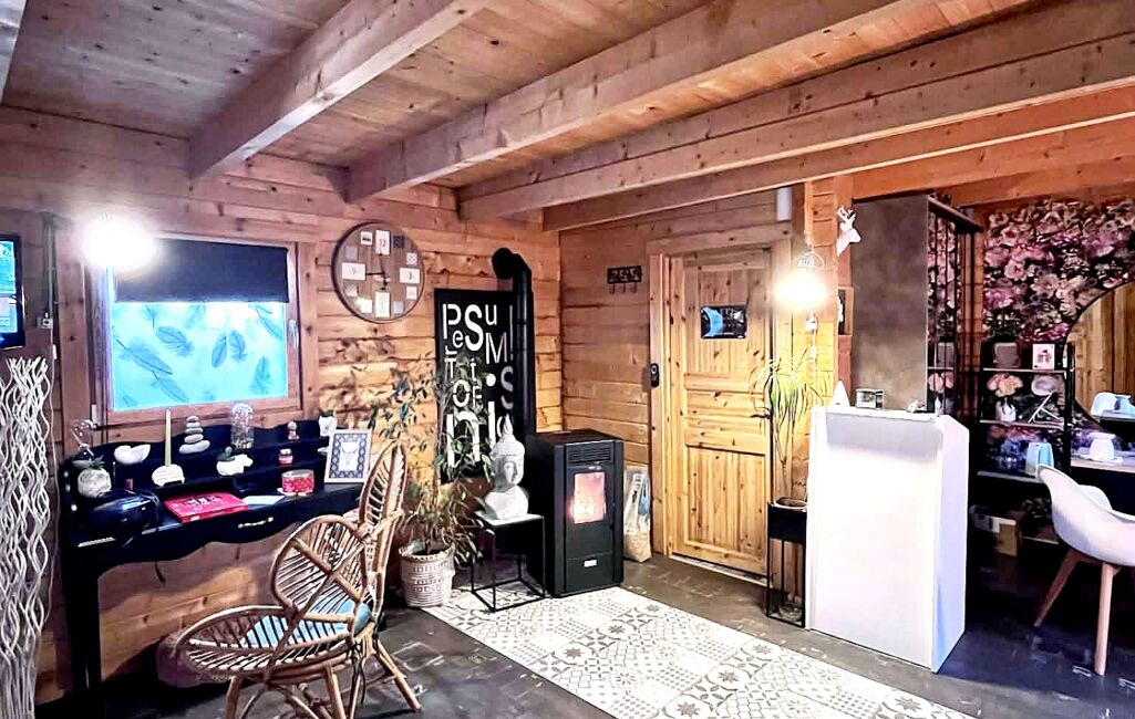 Chalet isolé de 49 m² avec eau, électricité et poêle à granulés, idéal pour activité professionnelle