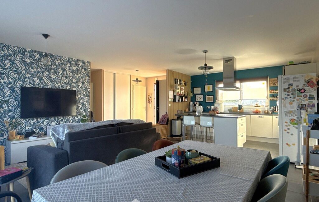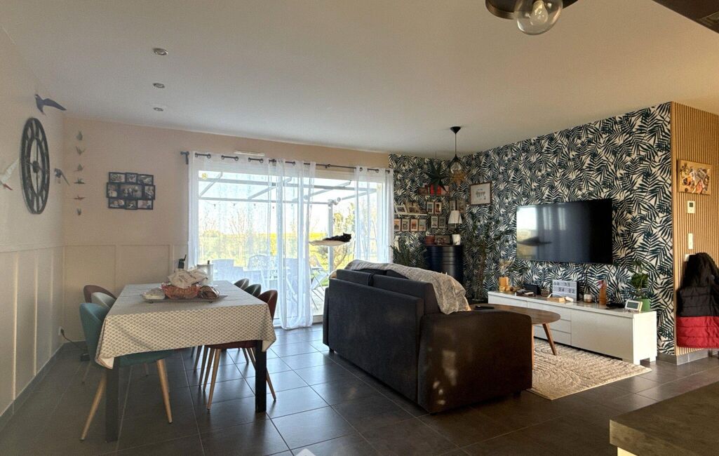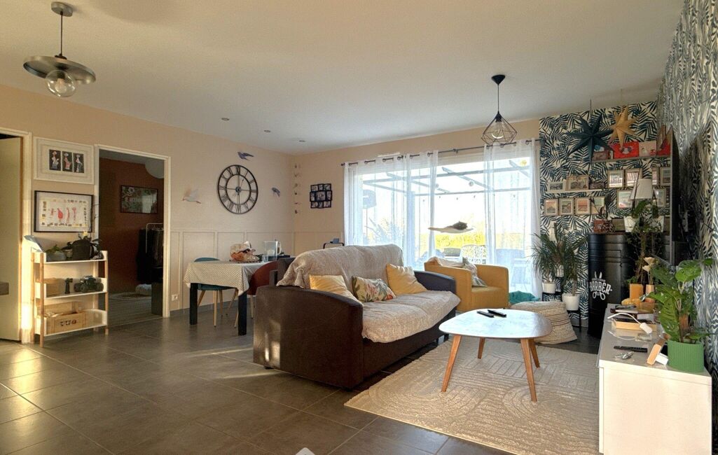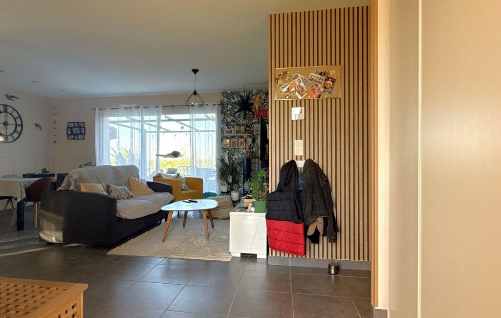 Entrée avec placards, pièce de vie d'environ 41 m2 comprenant une cuisine ouverte façon US aménagée-équipée et salon-salle à manger, 4 chambres dont 3 équipées de placards, salle de bains avec baignoire et douche, WC séparé, cellier / buanderie (5,59 m2). Terrasse d'environ 40 m2 avec pergola, garage (16,05 m2).