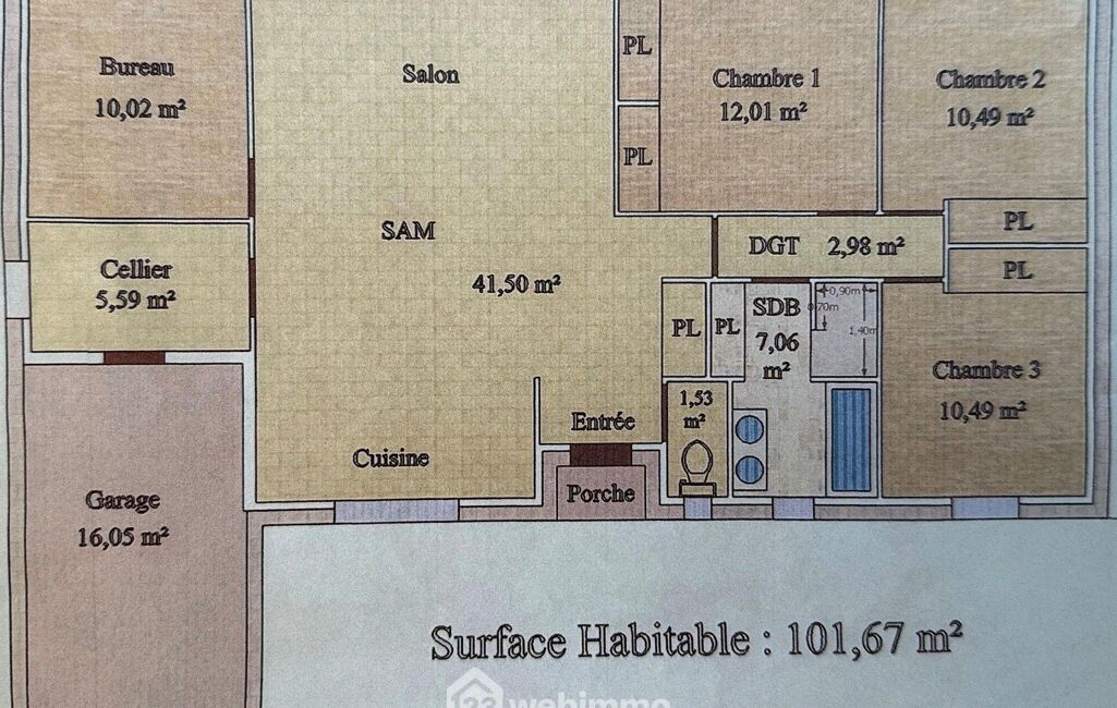 - Surface habitable : 101 m²