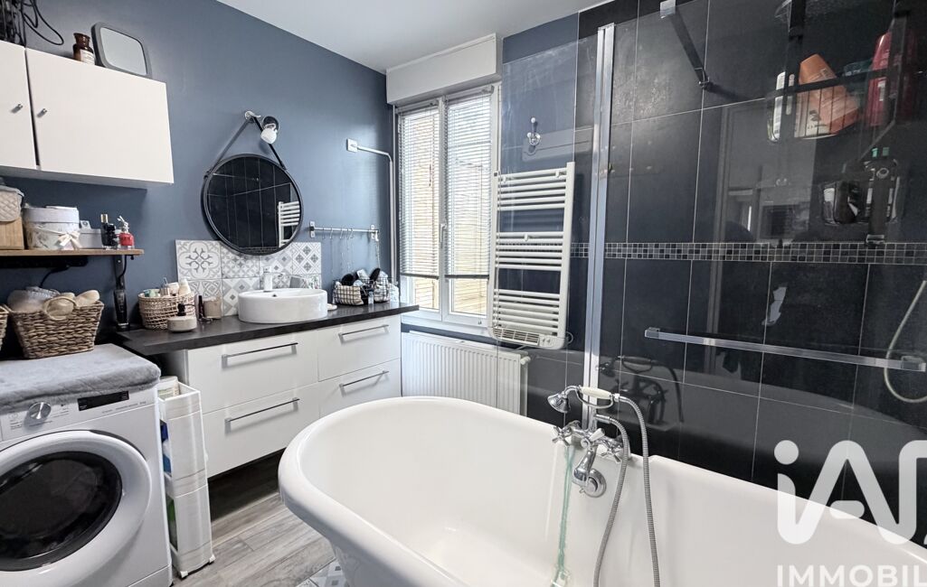 •Une salle de bain complète avec douche et baignoire