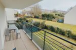 Grand balcon pouvant accueillir plusieurs personnes pour un repas.