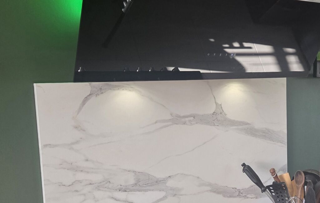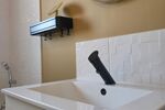 La buanderie, aménagée, permet d'accéder au garage équipé de 2 prises pour recharge de véhicule électrique.
