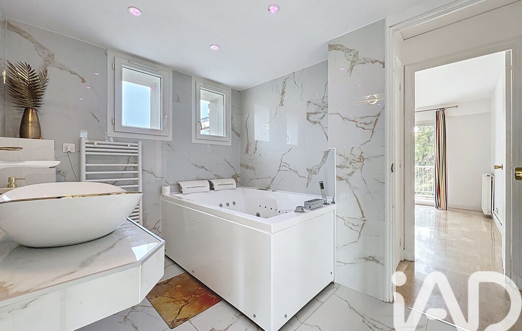 Côté sanitaires, l’appartement offre une salle de bains avec baignoire balnéothérapie deux places, fenêtre et sèche-serviettes, complétée par une seconde salle d’eau avec douche à l’italienne, ainsi que des toilettes séparées.