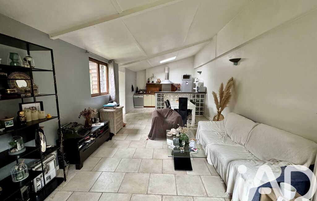 Une maison individuelle en fond de parcelle comprenant : un grand séjour donnant sur une cuisine aménagée et équipée, une salle d'eau ainsi qu'une chambre.