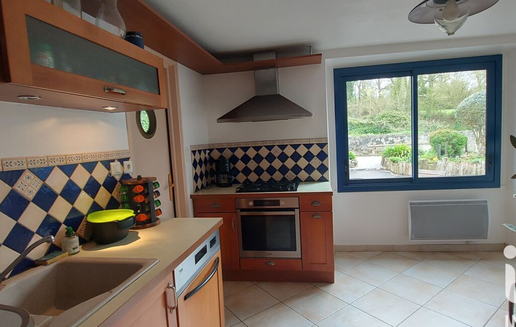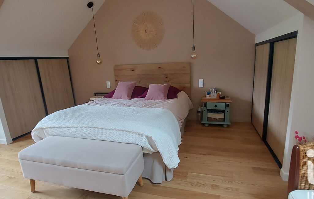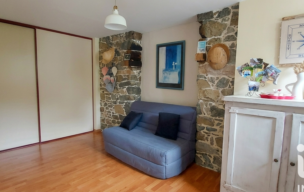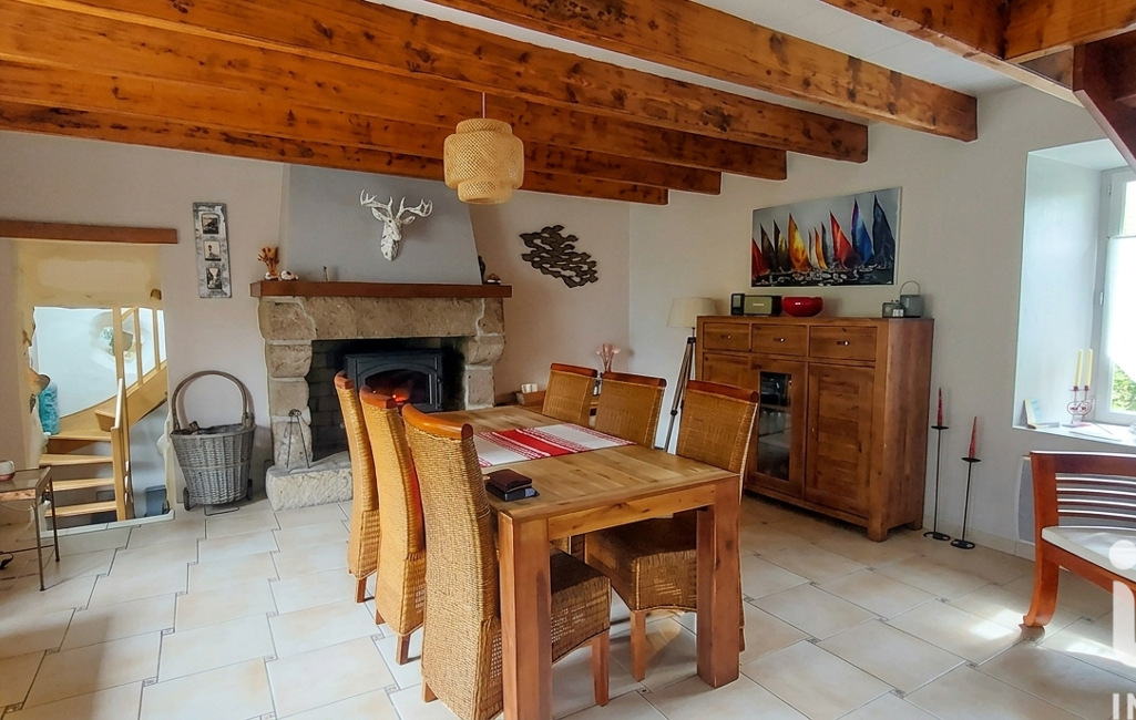 iad France - Aurélie Jouan vous propose: Pleneuf Val Andre à 5mn des commerces mais au calme dans ecrin de verdure .Magnifique longere poutres et pierres apparentes offrant une vie de plain pied ,entree ,cuisine amenagee ,beau sejour avec poele a bois ,petit salon donnant sur le preau couvert avec au dessus un espace mezzanine. Salle d eau ,buanderie ,wc .A l etage un vaste palier avec rangements , une grande chambre , 2 autres chambres , salle d eau wc. Celier de plus de 30 m² , garage , magnifique terrain arboré sans bruit ni vis a vis