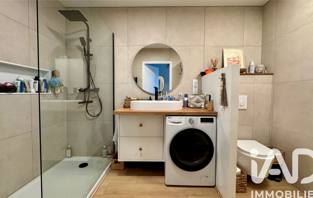 En rez-de-chaussée, il développe environ 64 m² avec une pièce de vie de 30 m² composée d’un salon, d’une salle à manger et d’une cuisine ouverte. L’ensemble est fonctionnel et lumineux.
