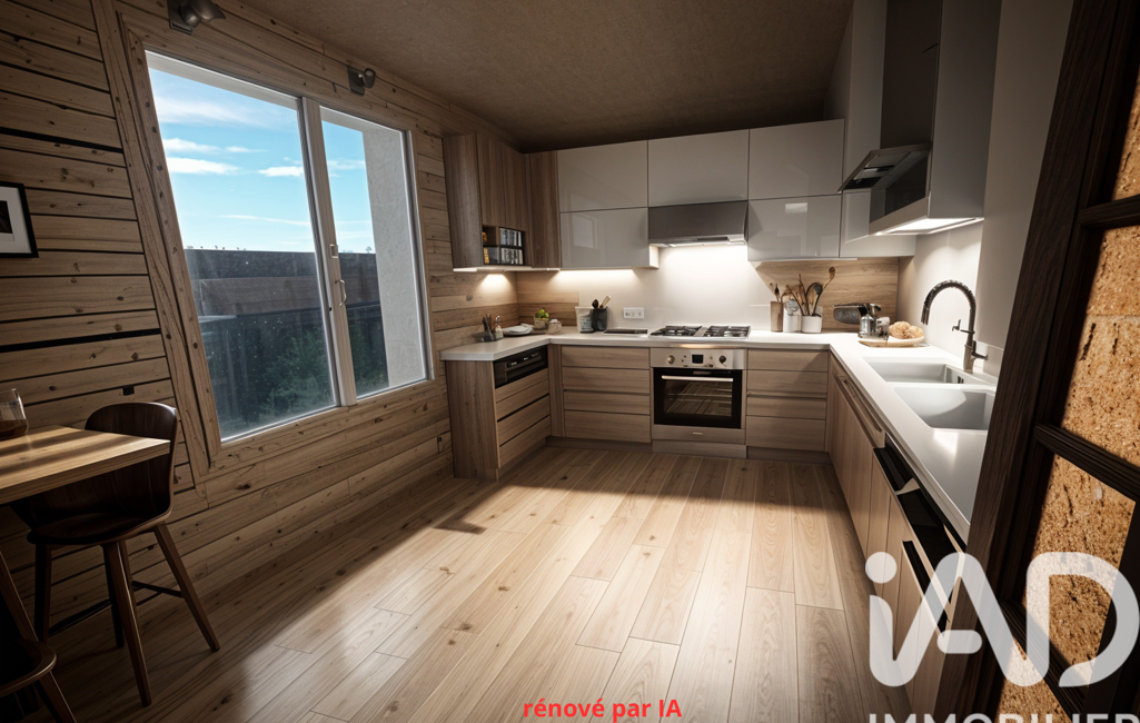 Elle se compose au rdc d'une cuisine, d'un séjour double avec cheminée, d'un couloir , un wc, une salle e bain et deux chambres.