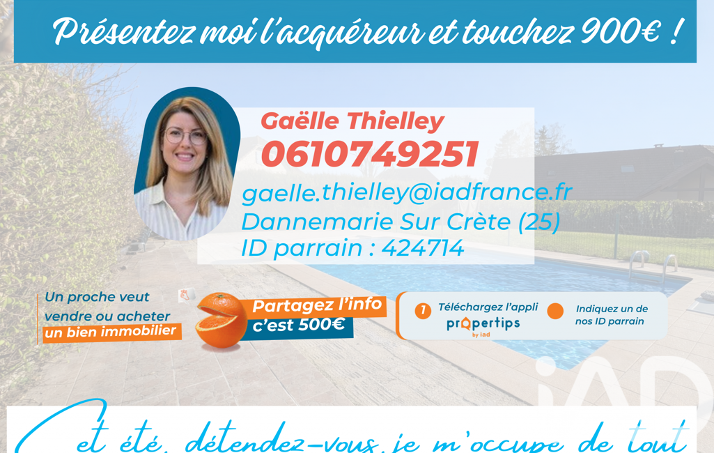 La présente annonce immobilière a été rédigée sous la responsabilité éditoriale de Mme Gaëlle Thielley mandataire indépendant en immobilier (sans détention de fonds), agent commercial de la SAS I@D France immatriculé au RSAC de Besançon sous le numéro 910879428, titulaire de la carte de démarchage immobilier pour le compte de la société I@D France SAS.