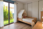 L’espace nuit propose quatre chambres, dont une pièce traversante qui s’adaptera parfaitement à un bureau, une salle de jeux, un espace télétravail ou une chambre d’appoint, selon les besoins de chacun. Cette configuration conviendra aussi bien à une famille qu’à des acquéreurs recherchant une maison de plain-pied avec des espaces modulables.