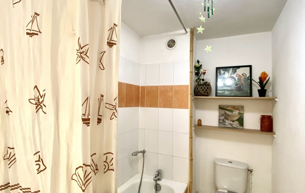 L’appartement offre un espace de vie lumineux, composé d’un salon avec cuisine ouverte entièrement équipée, pensé pour allier confort et convivialité. Cet espace s’ouvre directement sur une agréable terrasse extérieure, véritable prolongement du logement, idéale pour profiter des beaux jours. La chambre, spacieuse et soigneusement aménagée, invite au repos dans une atmosphère douce et apaisante. La salle de bain, fonctionnelle, dispose d’une baignoire et de WC.