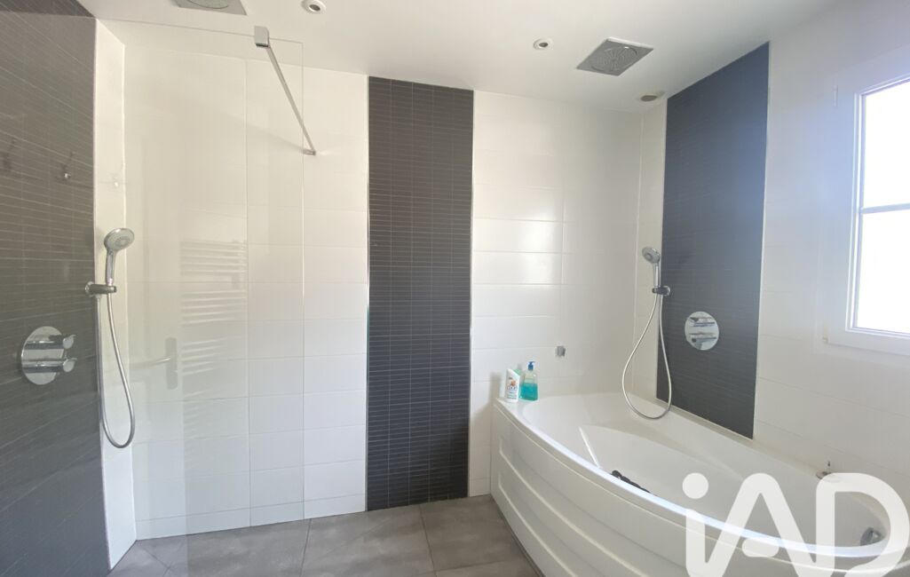 Une salle de bain spacieuse avec douche italienne et baignoire.