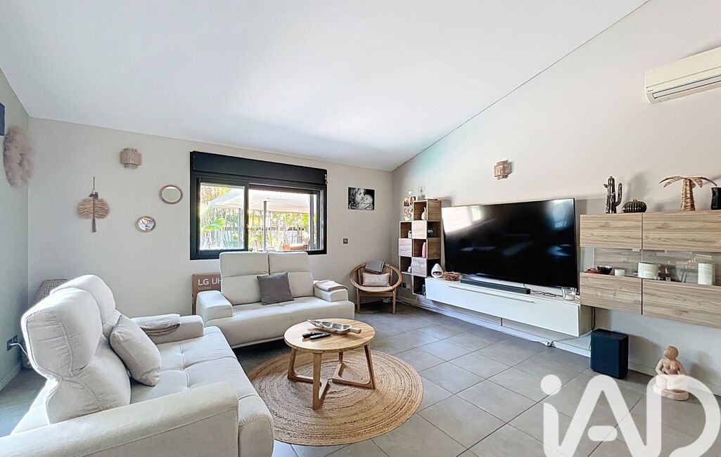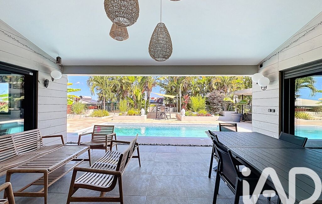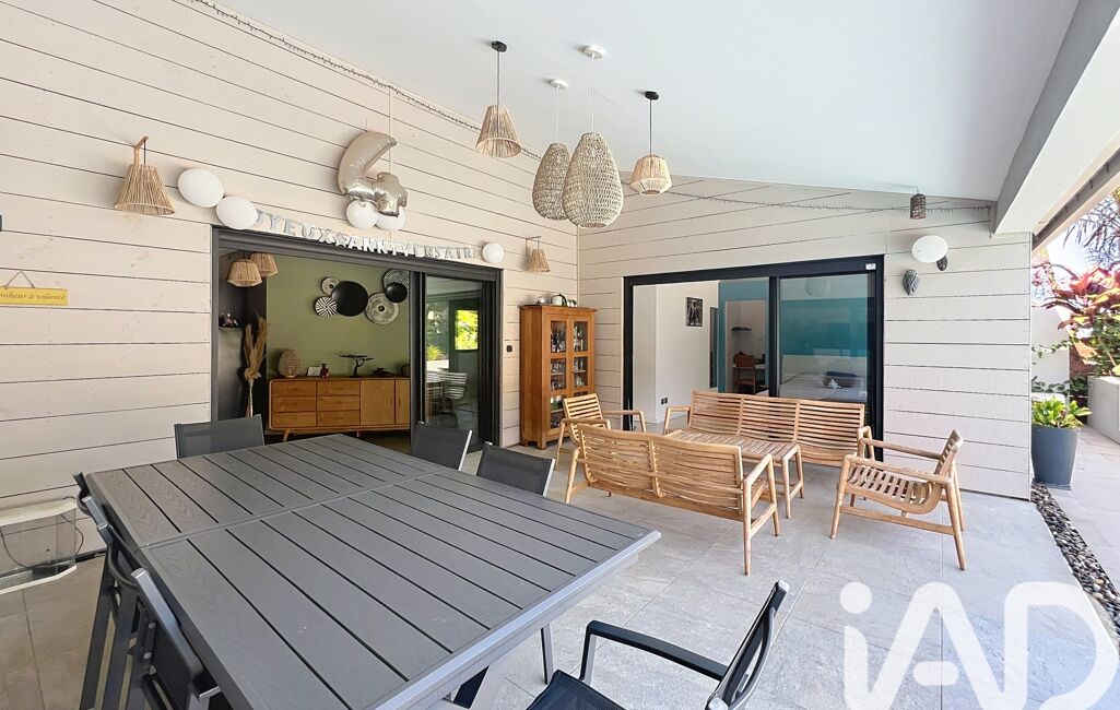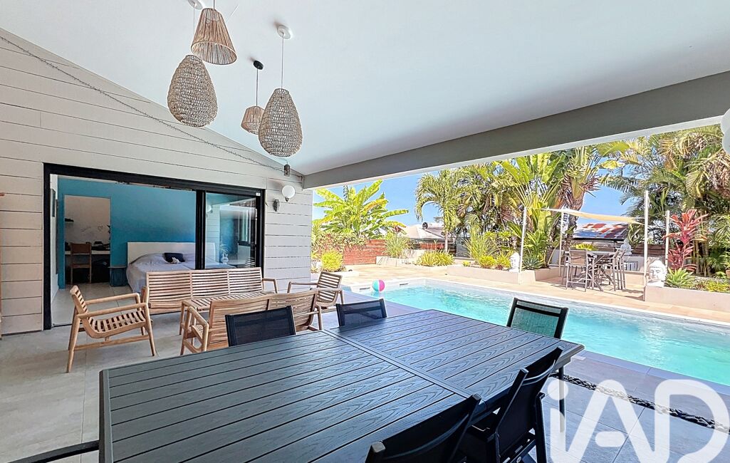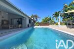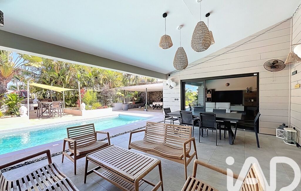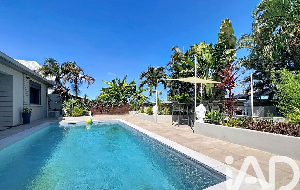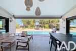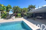 La villa, implantée en 'L', entoure une piscine au sel et une varangue de 29 m².