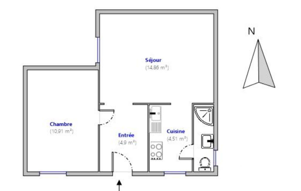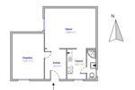 Appartement 2 pièces de 37m², il se compose d’une entrée, un séjour, une cuisine, une chambre et une salle d'eau avec toillet.