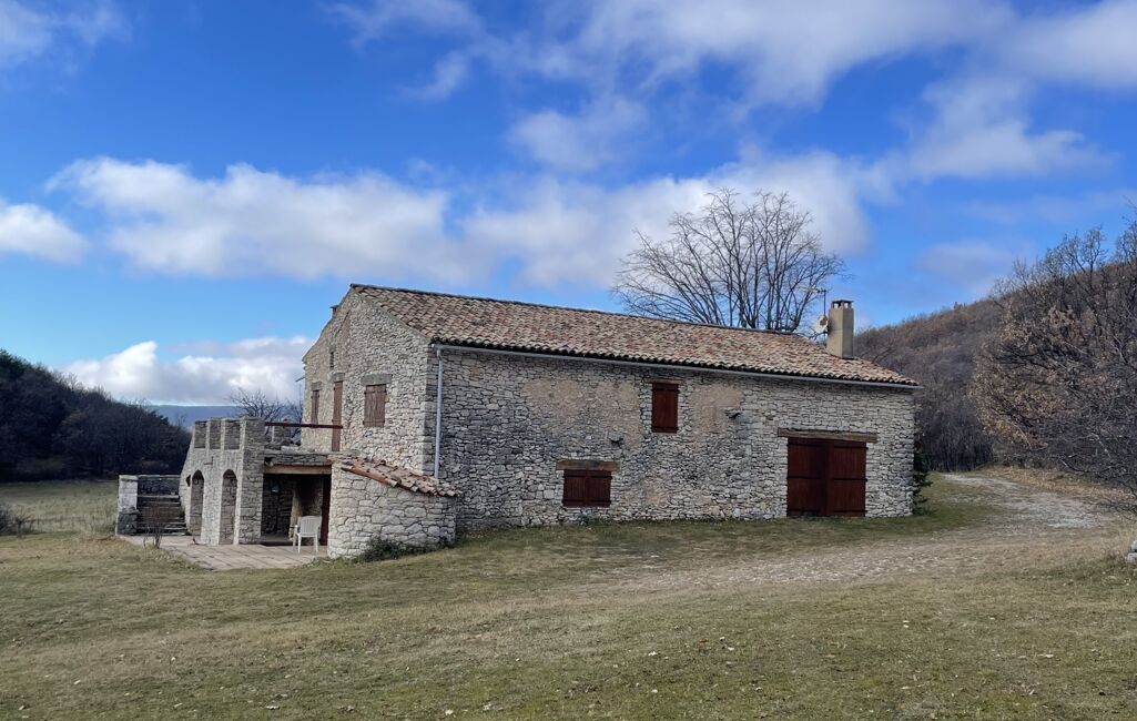 Ancienne bergerie construite en 1800, elle se compose en rez de chaussée, d'une cuisine, salle à manger, séjour, une salle d'eau et un WC indépendant. A l'étage, bureau, salle de jeux et deux chambres. La maison dispose également de deux terrasses et un garage de 33 m². Havre de paix de 100 hectares.