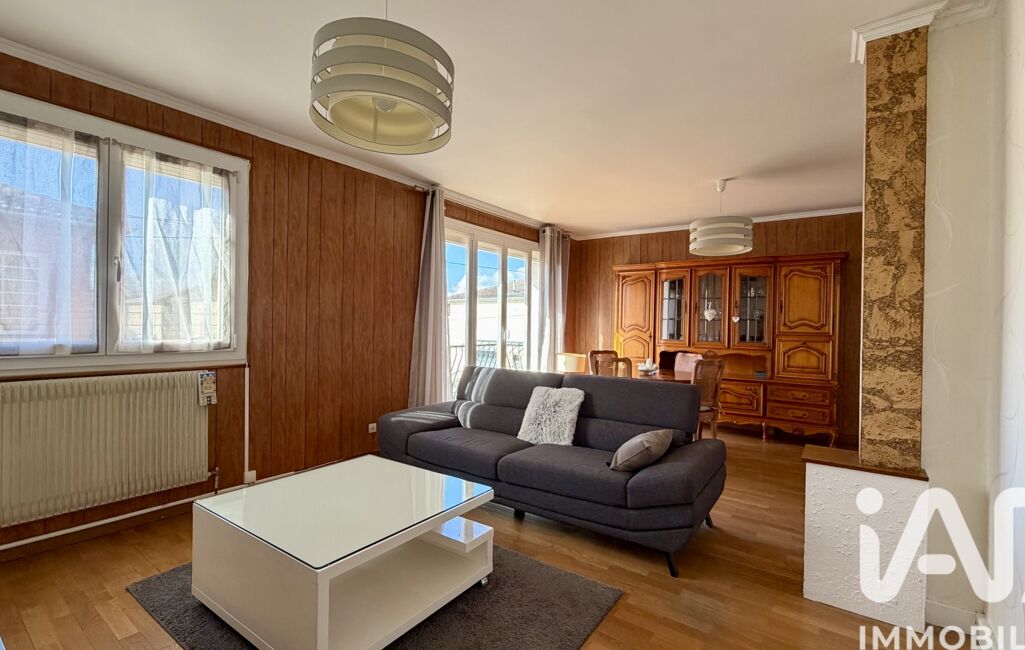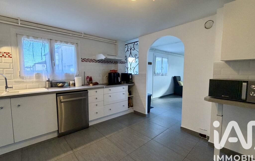 À l’étage, un second espace de vie composé d’un salon / salle à manger, une cuisine séparée, trois chambres, une salle d’eau, un WC séparé et un balcon offrant une belle clarté naturelle.