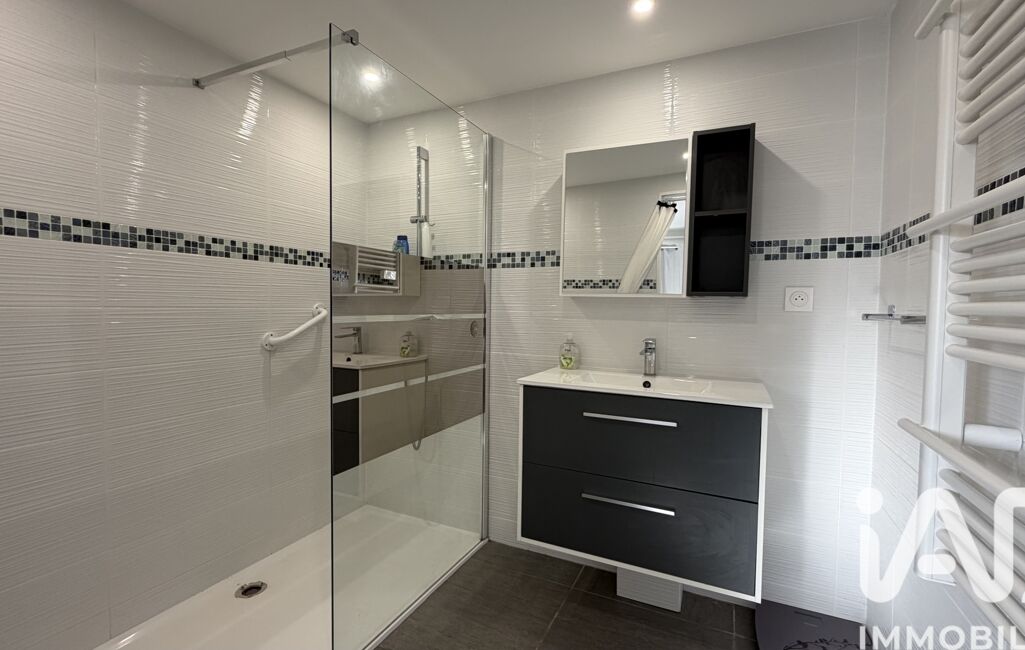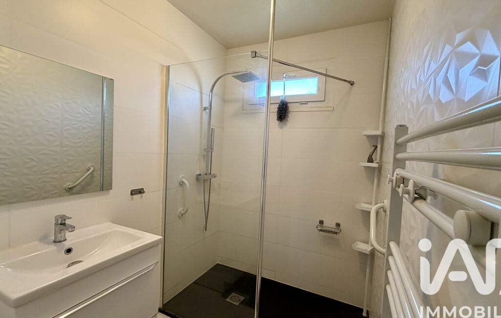 Au rez-de-chaussée, avec entrée indépendante également, vous trouverez un séjour, une cuisine semi-ouverte équipée, un WC séparé ainsi qu’une chambre avec salle d’eau, parfait pour un adolescent ou un usage locatif type T2.