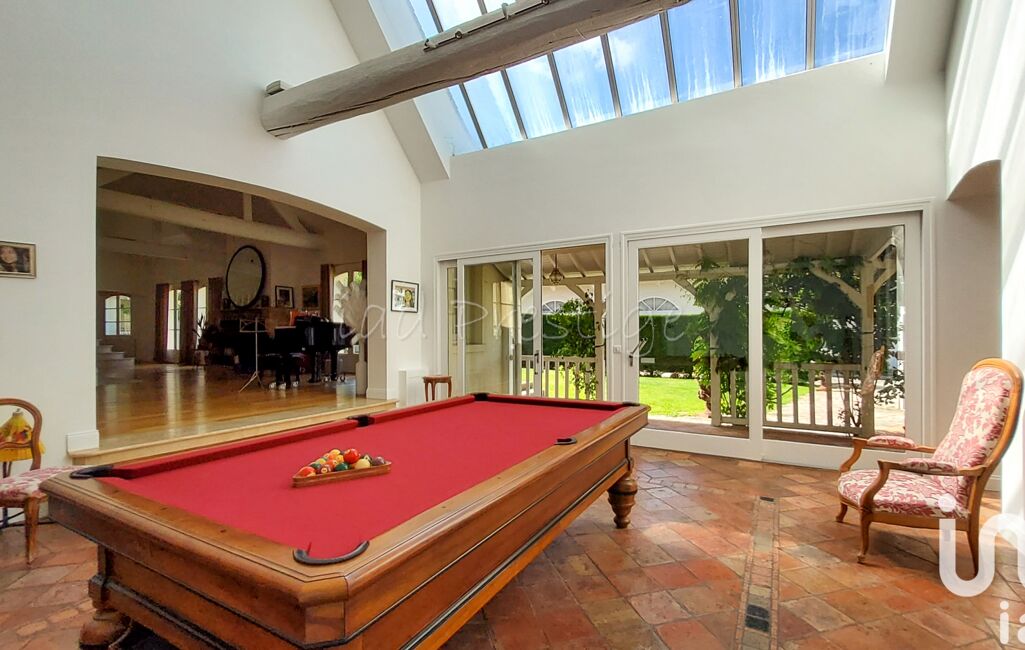 Dès l’entrée, vous découvrirez la salle de billard de 37 m², revêtue de tommettes anciennes soigneusement restaurées avec une verrière zénithale, puis un vaste séjour de 90 m², baigné de lumière grâce à ses larges baies vitrées, un sol en parquet de chêne massif et une imposante cheminée monumentale, idéal pour recevoir en toute convivialité, tandis que la salle à manger de 53 m², avec sa double exposition et sa cheminée au gaz, vous propose une vue dégagée sur le jardin et le patio.