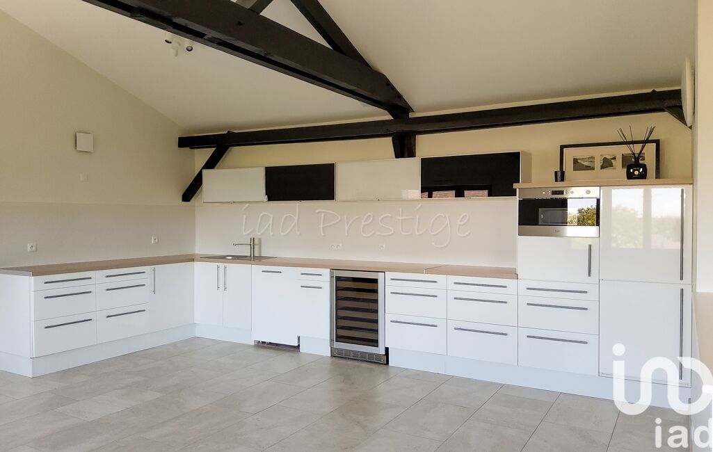 La cuisine de 21 m² dans un style rustique, pensée pour les amateurs de gastronomie, est entièrement équipée d’appareils haut de gamme (four professionnel et piano de cuisson).