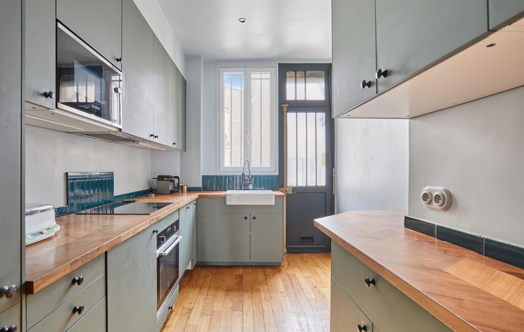 La cuisine indépendante, accessible directement depuis le séjour, bénéficie également d'un accès à l'escalier de service.