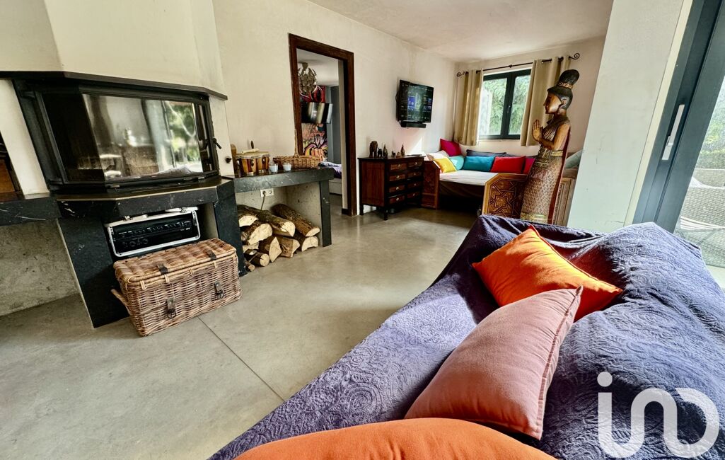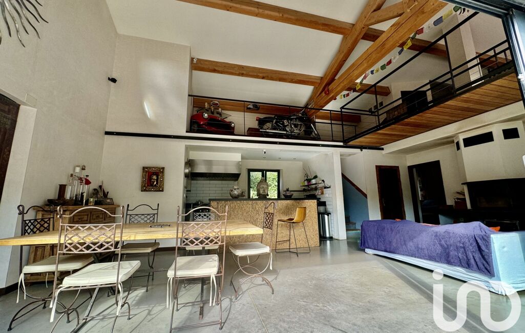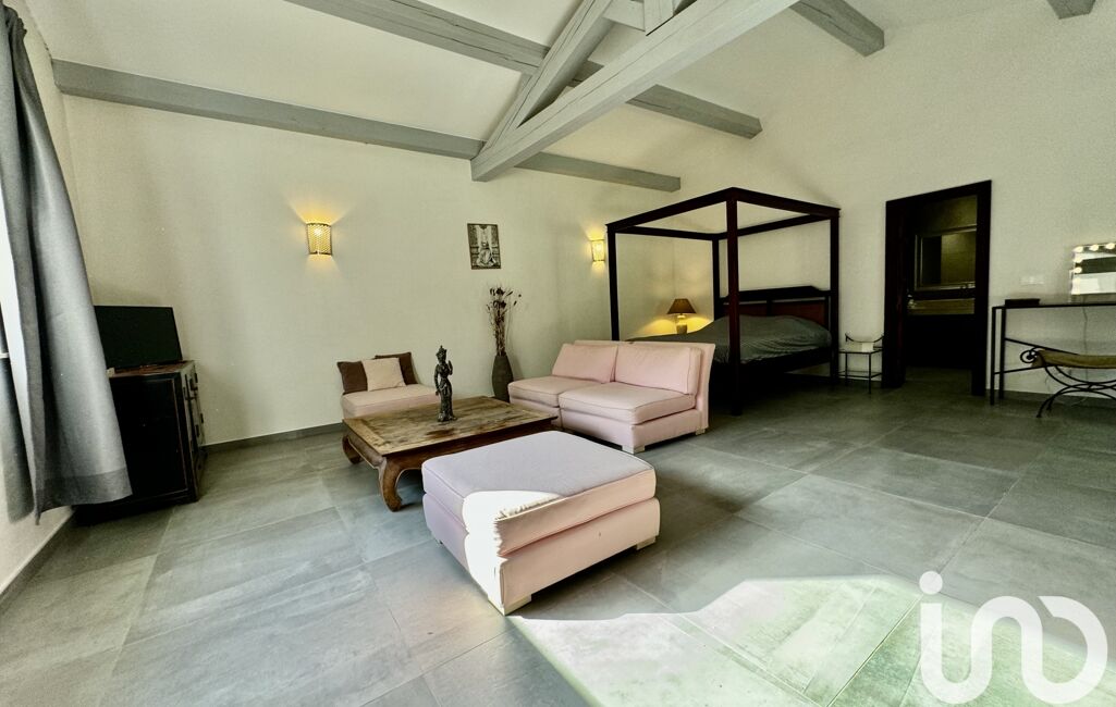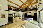 La maison principale comprend un grand salon, un séjour avec cheminée et plafond cathédrale, une suite parentale avec salle de bain, dressing et terrasse privée. Deux autres chambres partagent une salle de bain, ainsi qu’une buanderie et une cuisine professionnelle équipée.