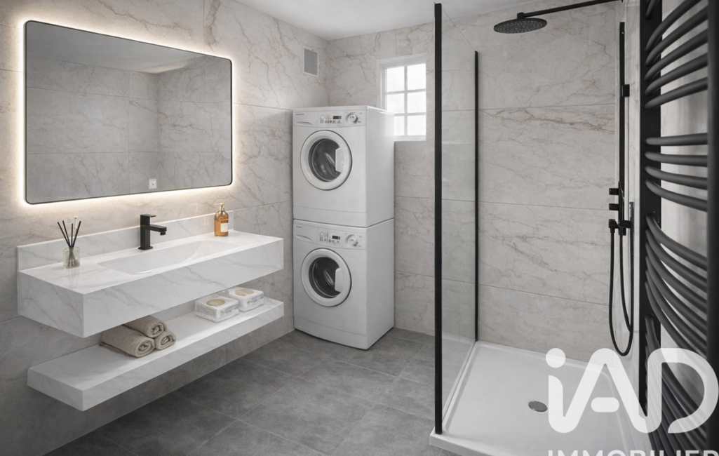 o5 m² avec douche et simple vasque, lave linge, sèche linge