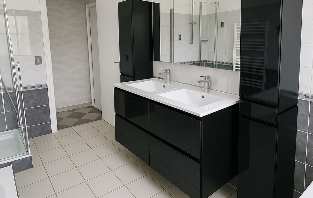 o7 m² avec douche, baignoire et double vasque, WC