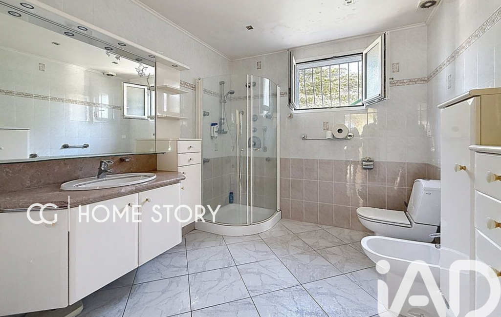 Édifiée sur un terrain plat d’environ 1 100 m², la propriété offre de beaux espaces extérieurs avec une piscine 5 x 10 m, terrasses, douche extérieure et plusieurs places de stationnement.