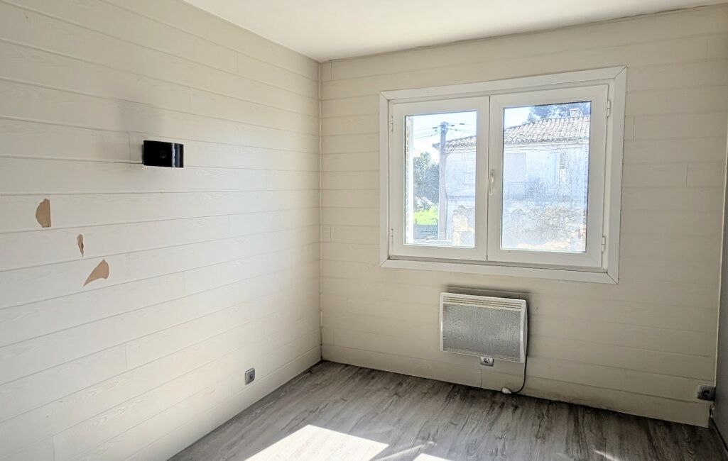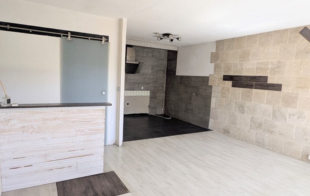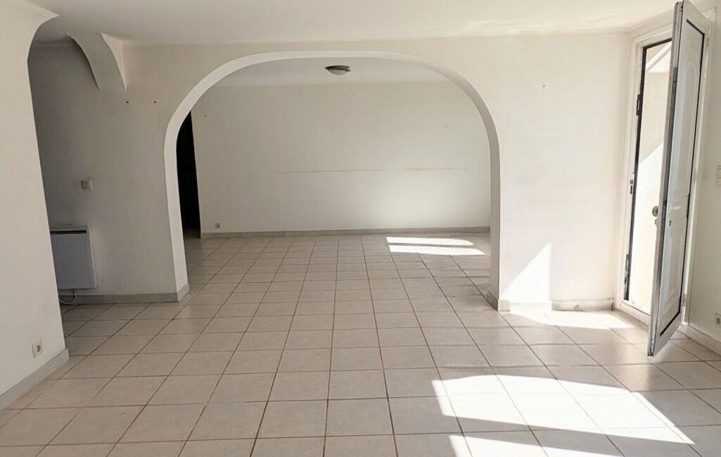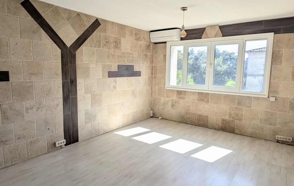 Le T3 situé au premier étage avec un garage de 120 m2 en dessous. Prévoir la pose d'une cuisine et quelques travaux de rafraîchissemement (peinture). Climatisation existante.
