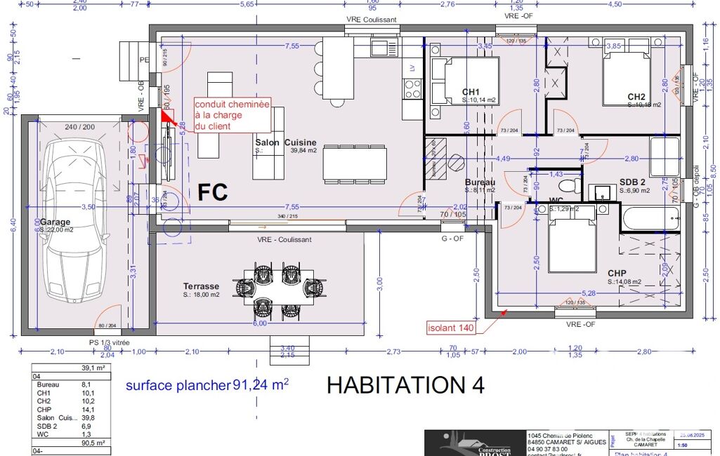 - Surface habitable : 91 m²