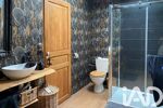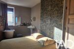 RDC cuisine ouverte sur séjour avec baie vitrée donnant sur la terrasse, 2 chambres, une salle d'eau avec wc, 2 caves. A l'étage 2 chambres une avec douche l'autre avec bain, un accès à la terrasse suspendue. L'autre maison actuellement exploitée en chambre d'hôtes, rdc le garage, à l'étage l'appartement avec une chambre avec douche, wc séparé, kitchenette, séjour, salon, à l'étage une suite parentale. Cette deuxième maison possède un accès indépendant, il y a aussi un garage. Le chauffage des radiateurs basse consommation, un poêle à pellet.